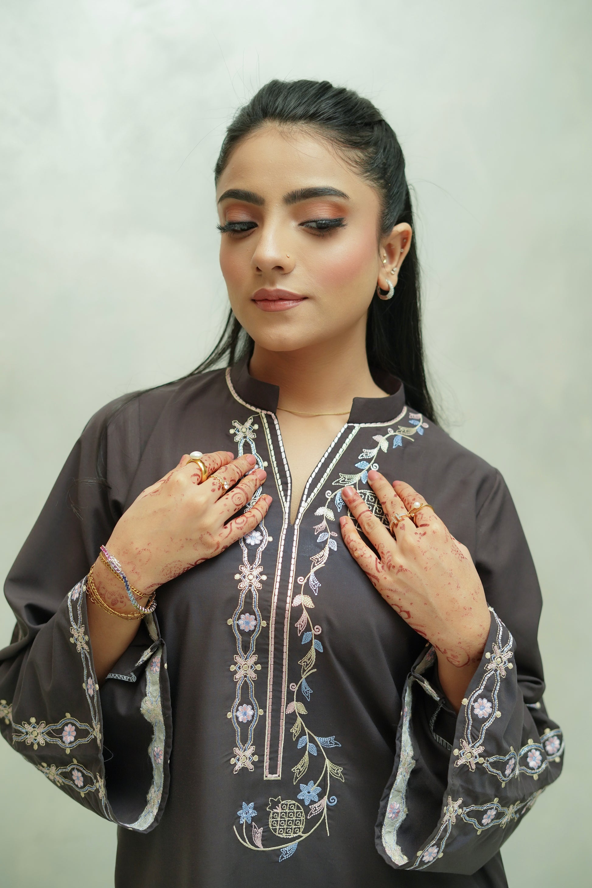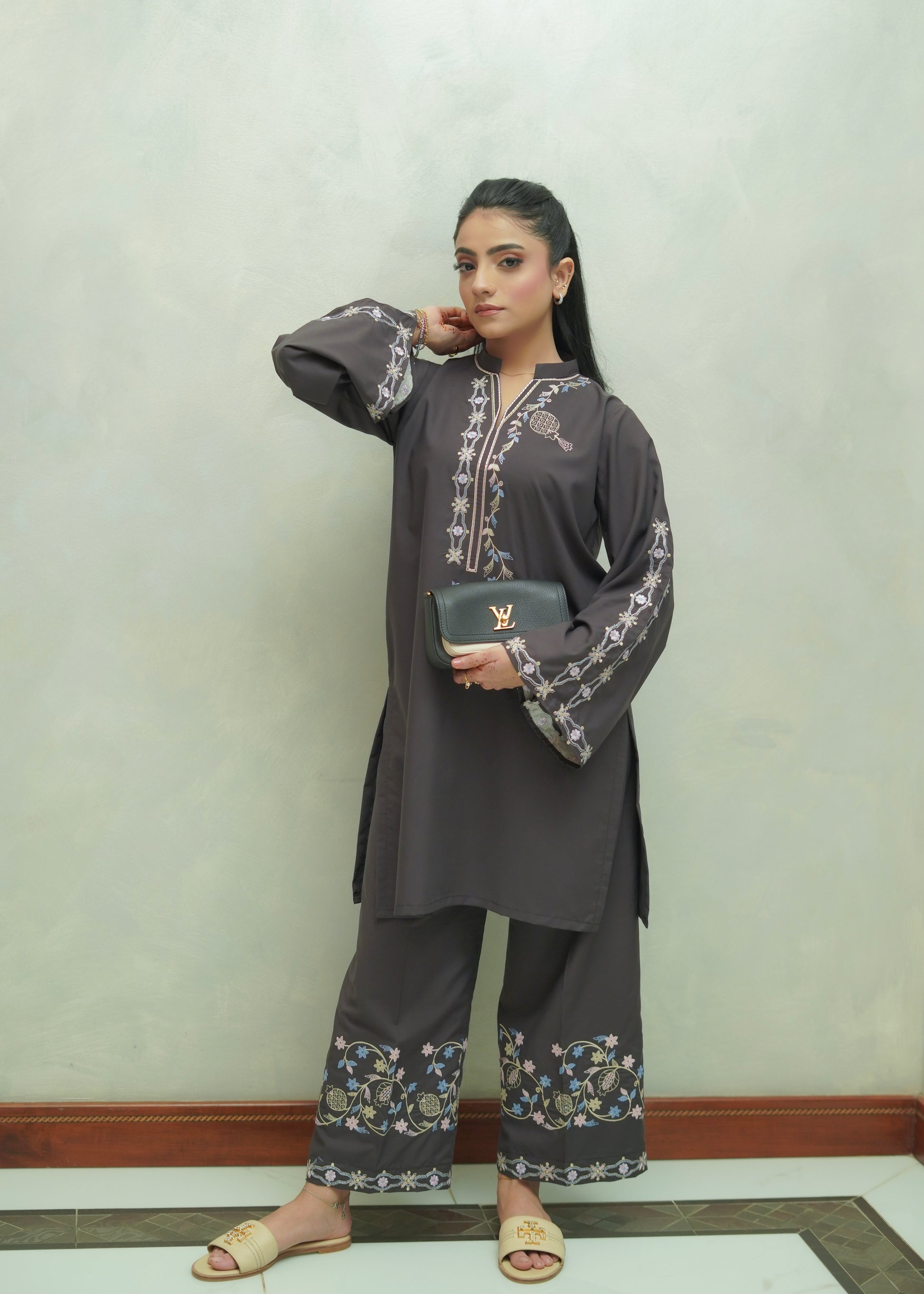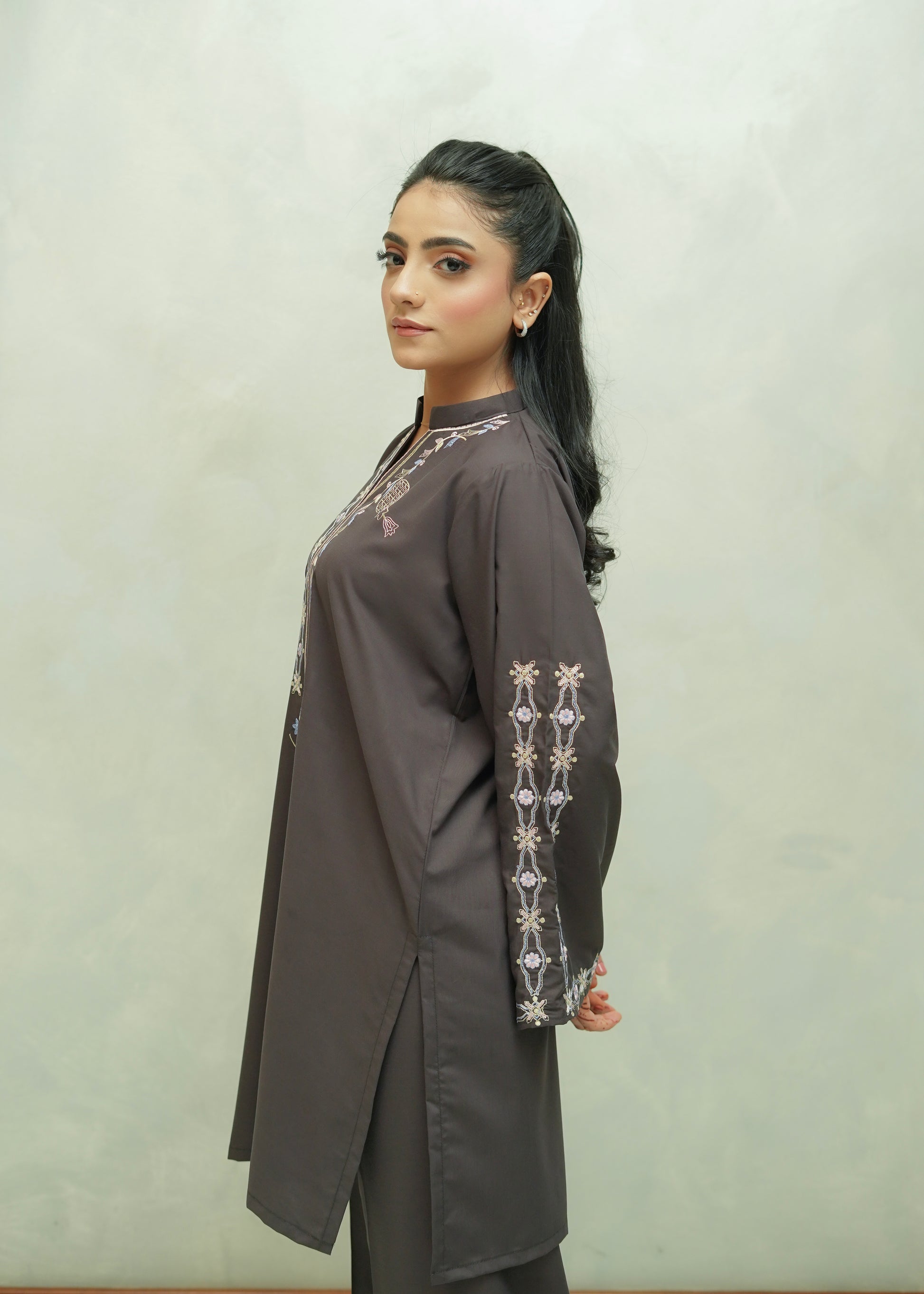 Grounded and timeless, Ethereal Earth brings natural elegance to life with its deep, earthy brown shade. The premium blended viscose fabric ensures maximum comfort, while the intricate embroidery on the shirt enhances its refined silhouette. Paired with coordinating trousers, it’s a versatile outfit for both casual wear and semi-formal gatherings.