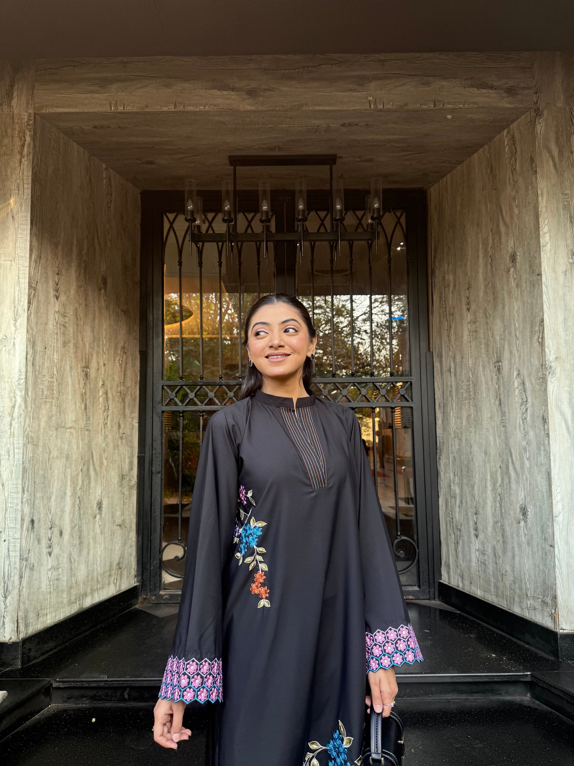 Crafted from premium crease-resistant blended fabric, Noir embodies timeless elegance in a classic black hue. Accentuated with vibrant floral detailing and refined finishing, this ensemble delivers effortless sophistication with all-day comfort perfect for making a subtle yet striking statement.